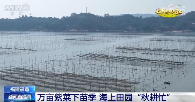 现在正是福建福鼎2.2万亩紫菜下苗的集中期。秋阳暖照之下,粼粼波光之间,养殖户抓紧下苗作业。