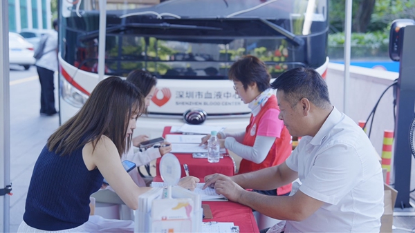 9月3日,在深圳南山区,年轻人们正在进行无偿献血登记