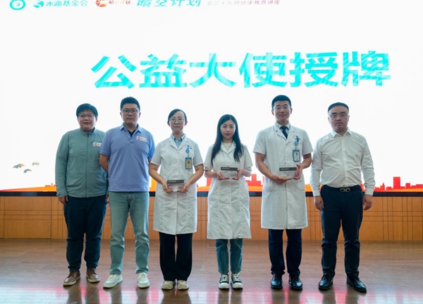 随后,北京水滴汇聚公益基金会相关负责人、晴空计划项目代表为三位专家进行了 “公益大使”授牌 。这不仅是对专家们个人专业素养和公益精神的高度认可,更是希望吸引更多医疗专业人士加入到肿瘤防治科普的队伍中来。北京水滴汇聚公益基金会相关负责人表示,希望通过专家们专业、权威、实用的科普知识,帮助更多大病患者了解疾病以及康复计划。