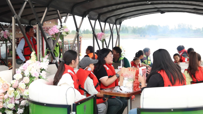 自10月1日起,蟒蛇河游船从如意港“首航”,往返直达大纵湖,为游客开启一段全新的水上之旅。乘着微风,看两岸景致徐徐铺展,成为这个国庆假期里一份独特的出行记忆。