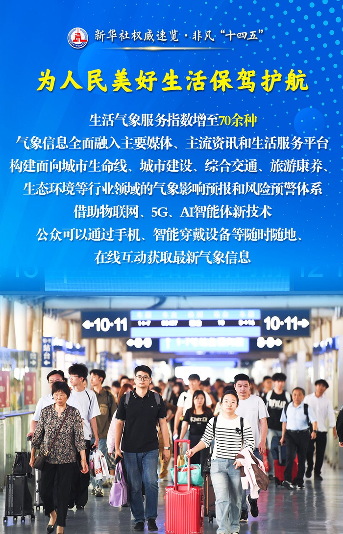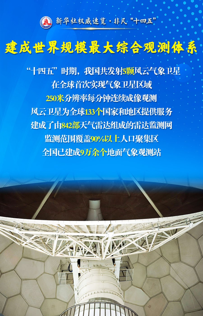 不断提高预报预测准确率,预报关键核心技术取得突破,推动气象观测“共谋、共建、共享、共治”,为人民美好生活保驾护航……“十四五”时期,在党中央、国务院的坚强领导下,气象高质量发展取得显著成效。跟随海报,一起了解。