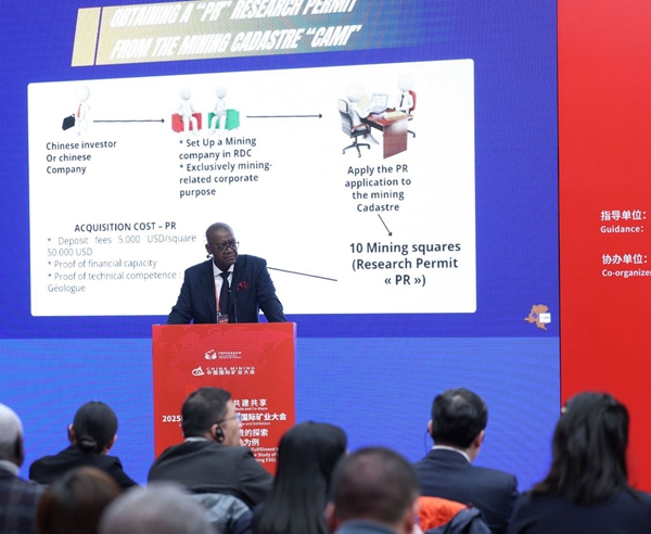 刚果(金)矿业地籍局局长波波尔・马博利亚出席论坛并发言,他介绍了中资矿企在刚果(金)的整体情况和面临的挑战,并鼓励在刚矿企履行社会责任。