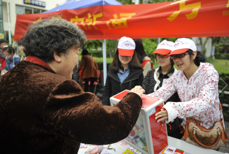 2013年4月21日,宁波大学生自发组织爱心义卖活动向雅安地震捐款。 视觉中国