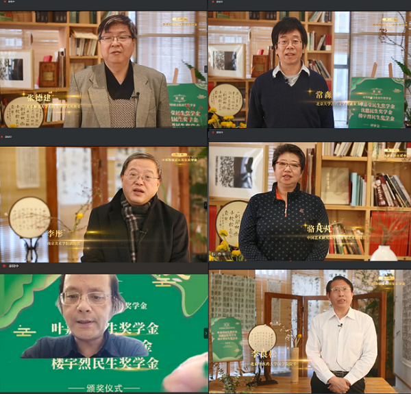 颁奖仪式开始前,叶嘉莹、沈鹏、楼宇烈三位先生先寄语,并播放中华传统文化民生奖学金短片、中华传统文化民生奖学金评审老师致辞短片。