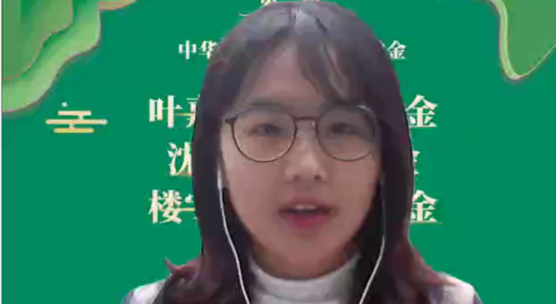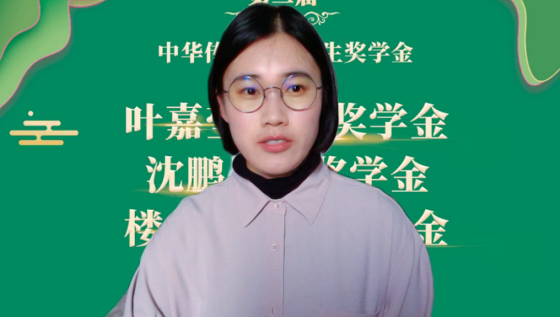 在此,请允许我代表获奖同学向叶嘉莹先生、沈鹏先生、楼宇烈先生,以及北京民生中国书法公益基金会的各位老师、奖学金捐赠者及各位评委老师们远程鞠躬致敬,表达感恩之情,同时也感恩一路上为我传道授业解惑的老师们。