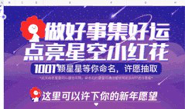 “小红花愿望清单”累计编辑957个版本,吸引超过4万人次浏览。与“小红花愿望清单”同步开展的“用1001颗星星点亮心愿”星空直播,累计有719万人次观看,许下的愿望超过2万条,以自己心愿命名的纪念版本证书也陆续发放到许愿用户手中。