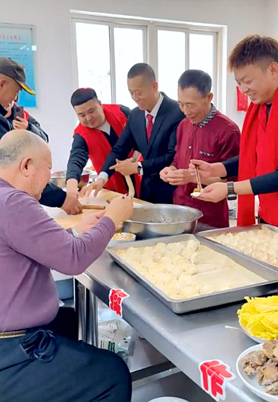 聆听完革命故事,工作人员与老兵们一同包起了饺子。揉面、擀皮、调馅、包捏,大家分工协作,有说有笑。小小的食堂里,热气腾腾的饺子香与浓浓的年味交织在一起,更有一份跨越代际的深情在流淌。