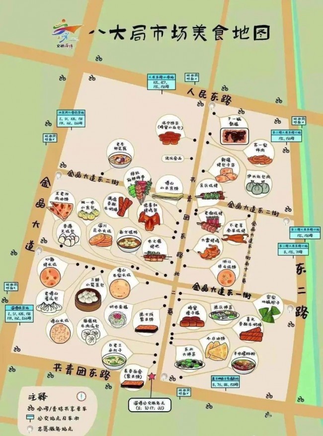 淄博美食地图。五一期间,“进淄赶烤”成现象级旅游景观。(图片来源:网络)