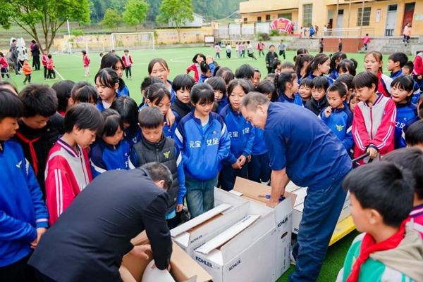 开幕式上,科勒向曾参加过比赛的【元宝同心实验学校】(以下简称【元宝女足】)捐赠水龙头、淋浴柱等生活设施,用于改善山区学生们的用水卫生状况。现场元宝女足的孩子们为科勒送上了一件全体女足队员和教练签名的球衣以及锦旗,以表感谢。科勒希望以更具人文关怀的公益实践,凭借自身在厨卫领域的专业产品和技术经验,承担更广泛的企业社会责任。