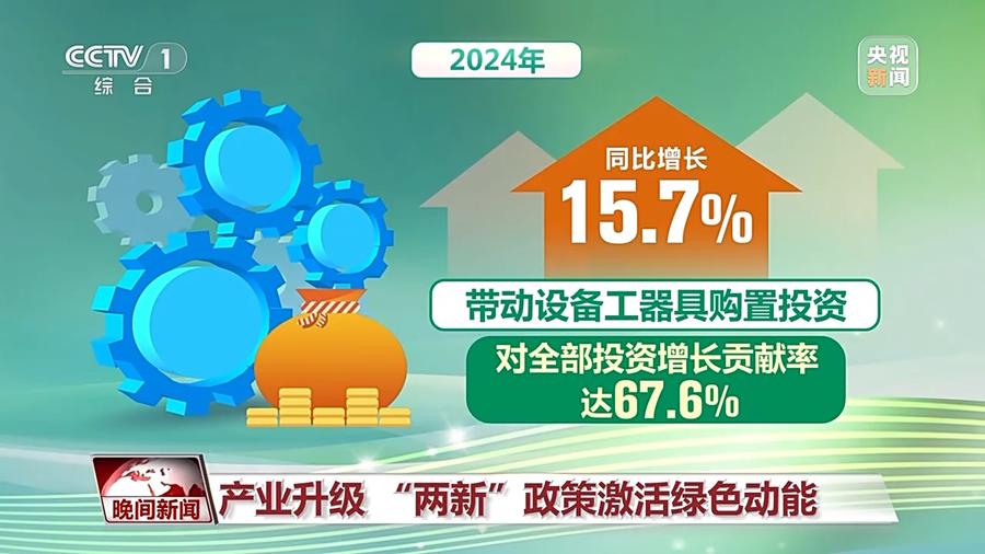 2024年,“两新”政策以超3000亿元特别国债资金,撬动绿色转型,成为高质量发展的核心引擎,带动设备工器具购置投资同比增长15.7%,对全部投资增长贡献率达67.6%;重点领域设备更新总量超2000万台(套),形成节能量2800万吨标准煤,减少二氧化碳排放7300万吨。