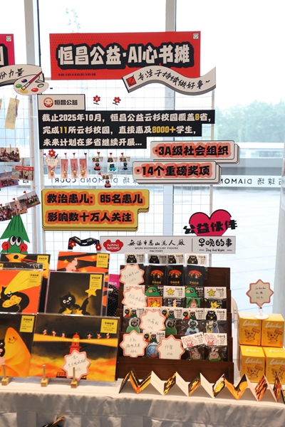 公益之路,从来不是孤军奋战的征途。每一份善意的延伸,都离不开伙伴们的并肩支撑。在恒昌公益“AI心书摊”爱心义卖区,“早晚的事”“无锡惠山泥人厂”怀揣着共同的公益初心,通过“以艺换爱”的方式携手同行,将商业资源、匠心工艺与公益使命紧密交织,让一件件文创产品成为传递温暖的载体,为乡村教育振兴注入源源不断的力量。