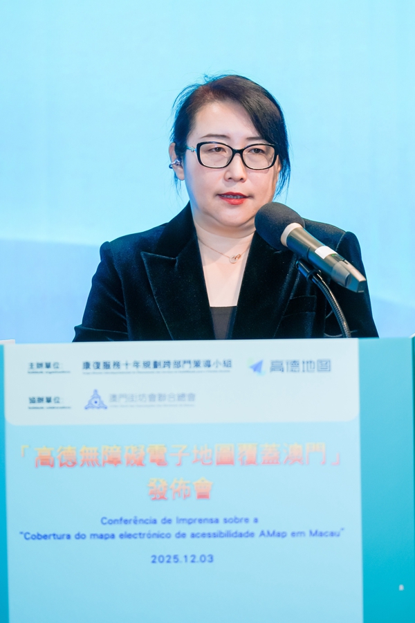 公益中国网讯 12月3日是第34个“国际残疾人日”,高德联合澳门特区政府社会工作局在澳举行“高德无障碍电子地图覆盖澳门”发布会,宣布高德无障碍导航正式在澳门上线。这是国内首个覆盖澳门的无障碍地图导航。澳门特区政府社会文化司司长柯岚、澳门特区政府社会工作局局长韩卫、高德副总裁李艳霞出席发布活动。