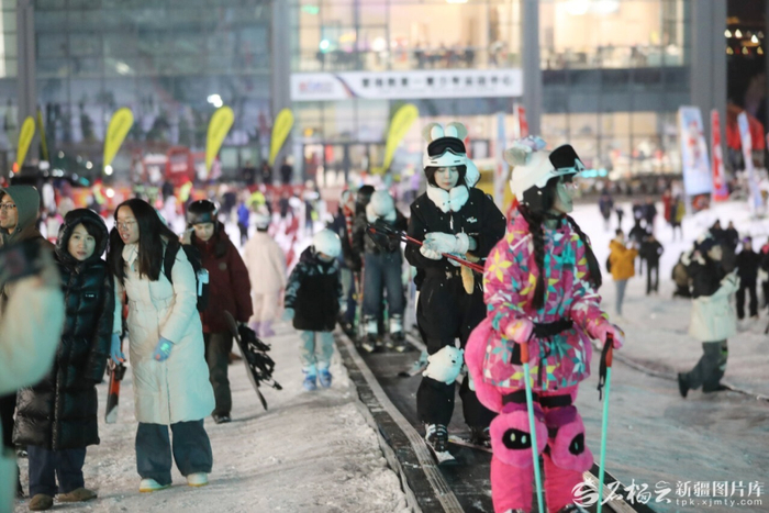 12月5日晚,丝绸之路山地度假区迎来了众多市民和游客。石榴云/新疆日报记者 李雄心摄