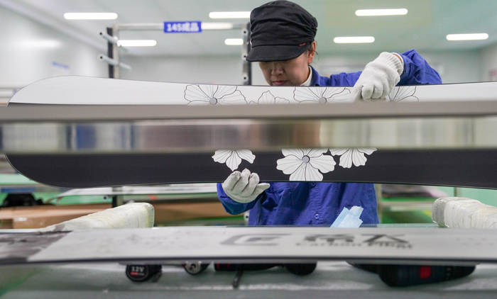 12月4日,在吉林化纤国兴复合材料有限公司车间内,工作人员复检公司自主研发生产的碳纤维滑雪板。新华社记者 颜麟蕴 摄工业和信息化部数据显示,我国已经形成15个大类冰雪装备器材产品体系,我国冰雪装备相关的企业数量从2015年约300家增长至2023年900家左右,销售收入也从2015年不到50亿元增长到2023年220亿元左右。