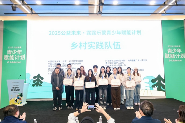 公益中国网讯 近日,2025 公益未来・露露乐蒙青少年赋能计划总结会在北京举行。本次会议由中国乡村发展基金会与运动生活方式品牌 lululemon(露露乐蒙)联合主办,汇聚了 15 所合作高校学生代表、学术专家及媒体代表,共同复盘年度项目成果,表彰优秀实践团队。这场以 “身心同频,悦动不停” 为核心精神的活动,不仅展现了青年公益的蓬勃活力,更构建起连接校园与乡村的健康成长桥梁。