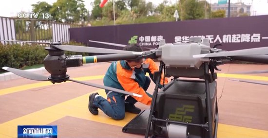 记者随快递员来到附近的无人机航站,看到刘先生寄出的合同与其他快件一起集中装运,准备起飞发往珠海。