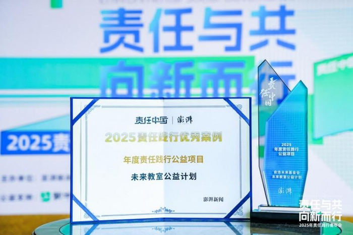 12月10日,由俞浩未来基金会发起的“未来教室公益计划”荣获澎湃新闻“2025年度责任践行公益项目”。该奖项是对俞浩未来基金会积极响应国家“乡村振兴”与“科教兴国”战略,以科技力量系统性推动教育公平实践的权威认可。
