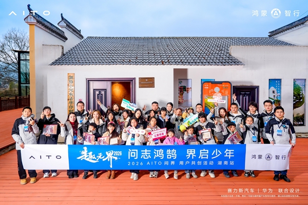 近日,“2026 AITO问界用户共创活动湖南站”在浏阳小河乡圆满落下帷幕。本次活动由问界湖南省区携手鸿鹄文化教育基金会共同发起,集结众多爱心车主与社会各界人士,以科技为媒、公益为桥,将精准助学与深度陪伴带进乡村,用实际行动诠释品牌的社会责任与担当。