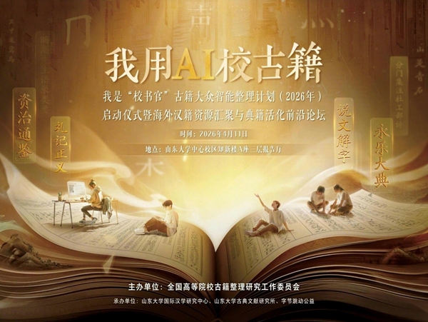 公益中国网讯 4月11日,“我用AI校古籍”2026年启动仪式暨“海外汉籍资源汇聚与典籍活化前沿论坛”在山东大学中心校区举行。活动由全国高等院校古籍整理研究工作委员会(简称“古委会”)主办,山东大学国际汉学研究中心、山东大学古典文献研究所、字节跳动公益联合承办。教育部语言文字应用管理司、全国高等院校古籍整理研究工作委员会、山东大学及字节跳动公益相关负责人,专家学者、志愿者代表、抖音创作者等160位嘉宾出席活动。