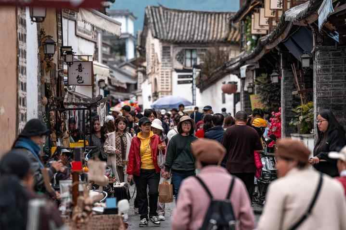 2025年11月24日,游客在大理喜洲古镇观光游览。