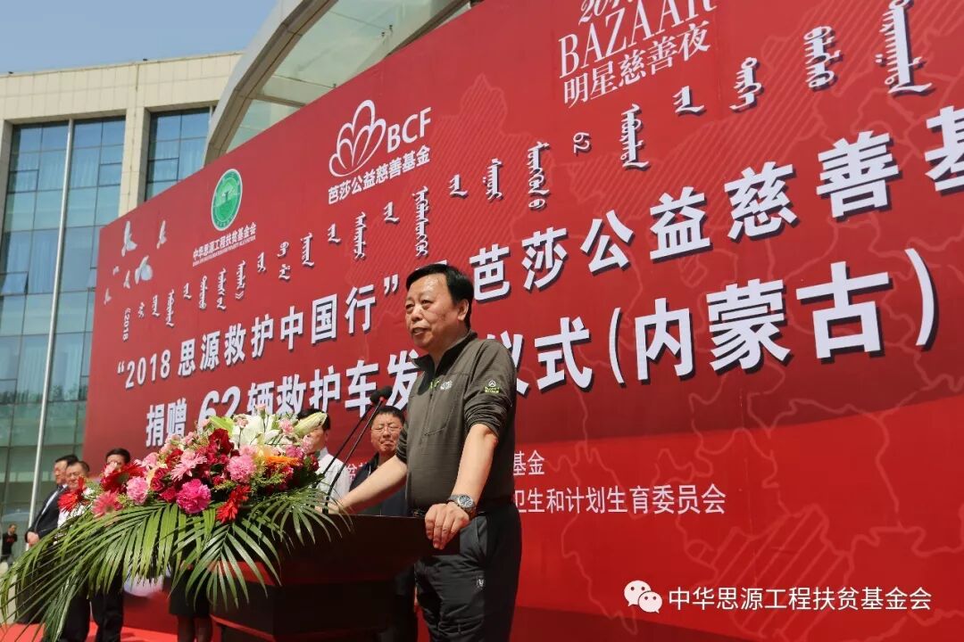 陶鸣副秘书长表示,在十一届、十二届全国人大常委会副委员长、民建中央原主席、“思源工程”理事长陈昌智的领导下,在全国人大常委会副委员长、民建中央主席郝明金的率领下,在全国人大代表,“思源工程”副理事长兼秘书长李晓林的部署下,“思源工程”于2017年(提前3年)完成向全国592个国家级贫困县、至少捐赠3辆救护车的庄严承诺后,始终心系内蒙古人民群众,联合芭莎公益慈善基金、芭莎明星慈善夜在“2018'思源救护中国行”向内蒙古捐赠62辆救护车的基础上,还将计划捐赠164辆救护车,重点向乡镇中心卫生院倾斜,旨在切实改善民生、促进医疗资源向基层延伸,从而为内蒙古自治区打赢脱贫攻坚战贡献应有的力量。
