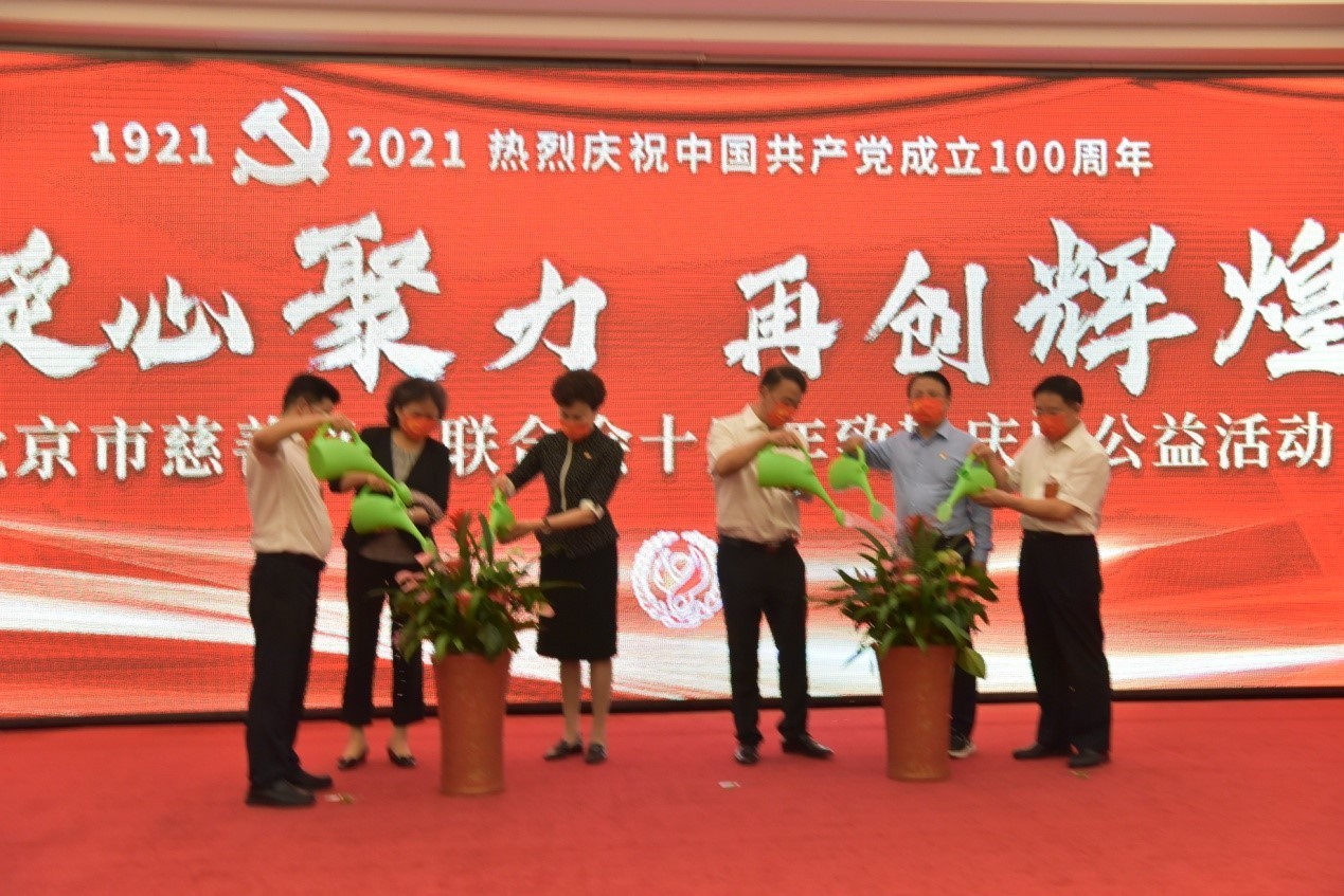 致敬慈善义工最美榜样团体和最美榜样个人之后,李万钧局长、滕盛萍主任、翟贤军局长;傅惠民会长、李薇薇监事长、陈志斌副会长同时登台,开启《浇灌希望之花》启动仪式。标志着慈善公益事业,用爱心浇灌希望之花,点亮慈善义工未来之路。最后全体起立齐唱《没有共产党就没有新中国》。点滴的星光汇聚成璀璨的星海,涓涓的细流奔涌成浩瀚的江河,北京市慈善义工联合会成立10周年致敬庆典公益活动圆满成功。