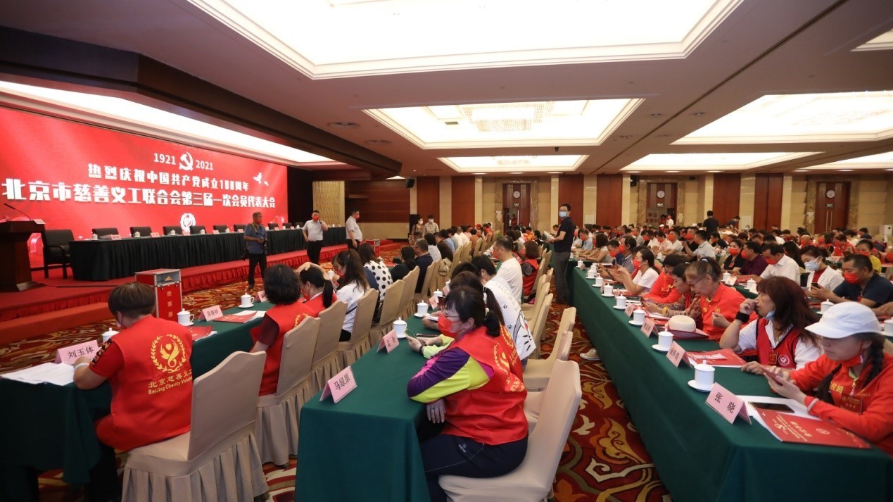 随后,全体会员代表300余人齐聚在中国职工之家一楼集体大合影,凝心聚力,再创辉煌。下午三点半,北京市慈善义工联合会成立10周年致敬庆典在祝福视频播放中拉开序幕,活动由北京广播电视台主持人李扬薇主持,今年、今月、今天都是一个非常值得纪念的日子,在建党100周年之际,北京市慈善义工联合会迎来建会10周年纪念,可谓“三喜临门”。主持人在介绍完出席本会的领导和嘉宾之后,新一届领导班子集体登台亮相,庄严宣誓。让我们铭记这铿锵的誓言,永远铭记慈善义工的崇高理想,并为之奋斗不息!